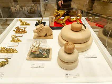 新高岡駅ギャラリー【MONONOーFU】では、高岡銅器・高岡漆器・井波彫刻・庄川挽物木地・越中和紙・越中福岡の菅笠の富山県内6産地の伝統工芸品やクラフトをご覧いただけます。