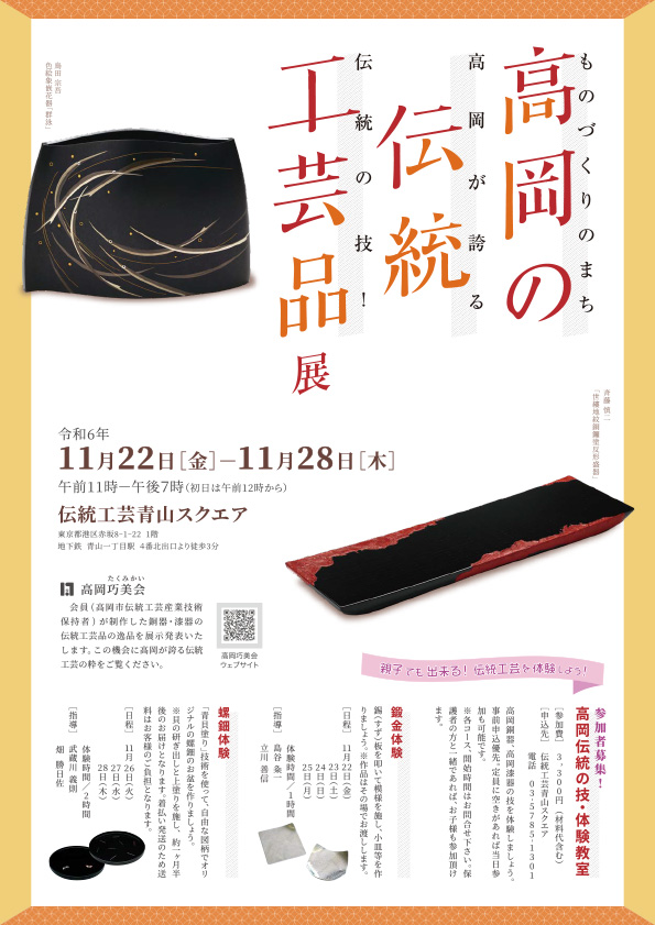 この度、東京・赤坂の伝統工芸青山スクエアにて「高岡の伝統工芸品展」を開催いたします。