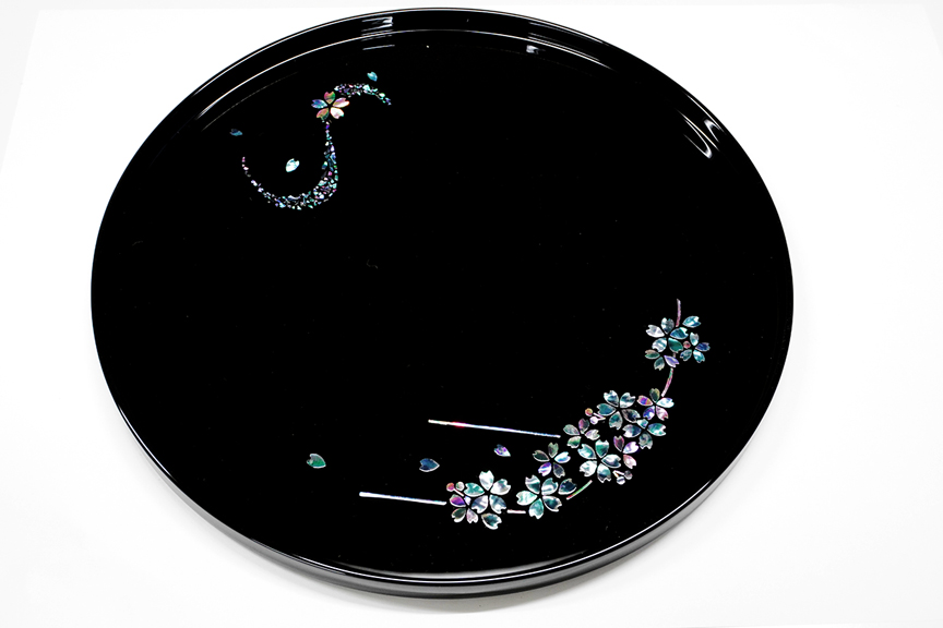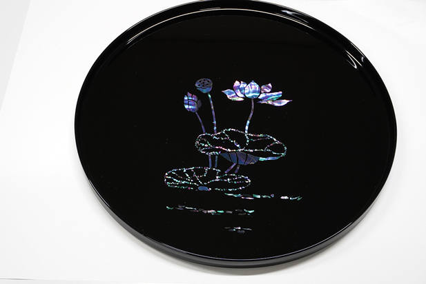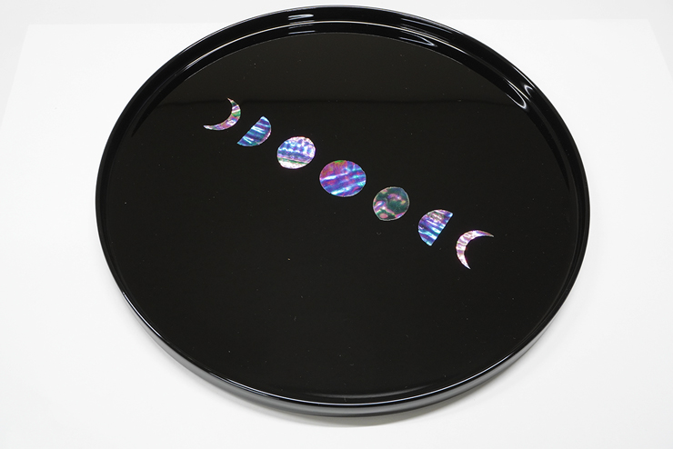 高岡の職人の手によって、貝の研ぎ出しと上塗りを施し、仕上げました。