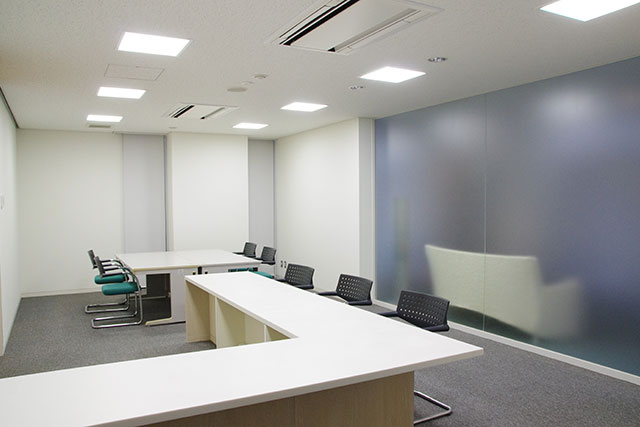 研修室はパーテーションでA、B、Cの3室に仕切ることが出来、全面、2/3、1/3の使い方も出来ます。