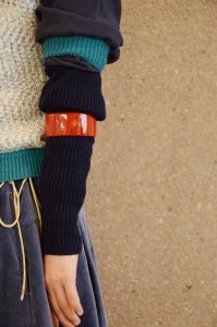 漆のバングルを着用してみました。漆特有の発色と光沢感が素敵です。