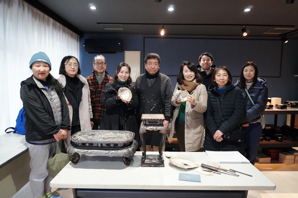 午後は、武蔵川義則氏(漆器)の工房を見学。