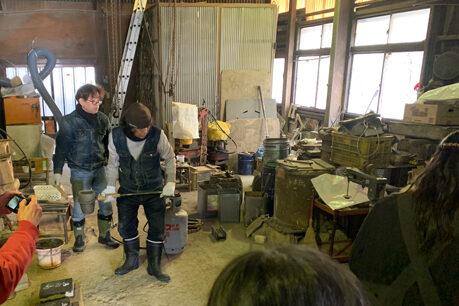 ・午前…技体験・鋳物で錫の小皿を作る [指導]中村 喜久雄(銅器・ガス型)